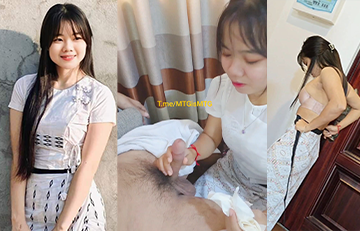 စော်လေးက မှုတ်ပေးပြီးတော့ လီးကိုနို့နဲ့ပွတ်ပြီးပါ ပြုစုပေးတာ